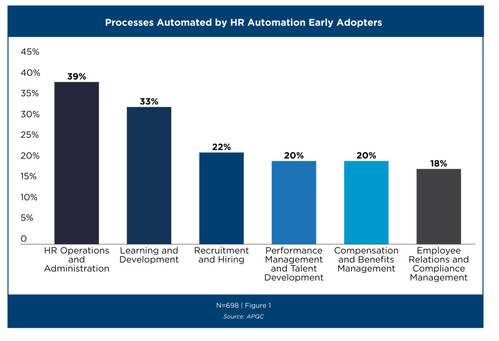 - Early adopters of HR automation focus on areas where the payoff is clear, like managing HR reporting and analytics.